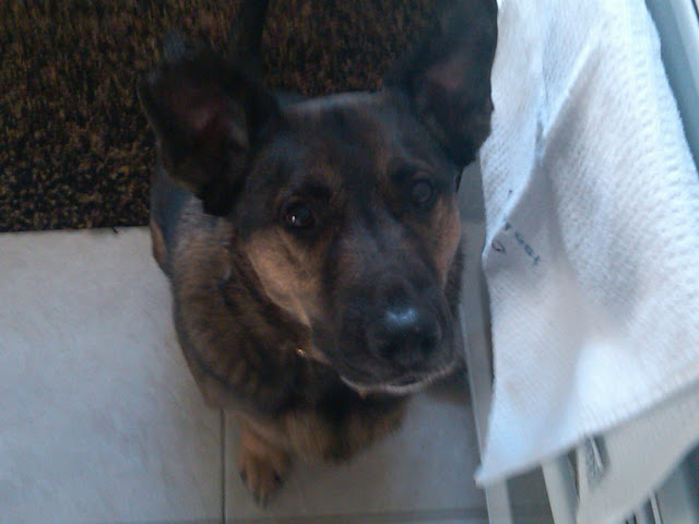 Jake is a bit disappointed, sure, but he understands the sitch. On the other hand, impatient reader Sophie The Blog Dog doesn't quite get the concept of waiting for something. Here she takes out her frustration and anger on The LG Report's foot: