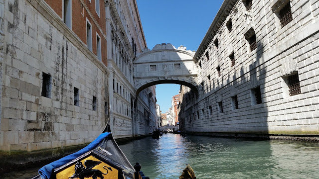 LG took The Wife on a gondola ride (about $140 for 40 minutes if you really must know). That is the "Bridge of Sighs" in the background (or is that considered the foreground?) So named because prisoners would supposedly cross it on their way to prison and would sigh at their last sight of the beauty of Venice before their incarceration. Probably a B.S. story but that's what they tell tourists. Don't be a killjoy by Googling it.